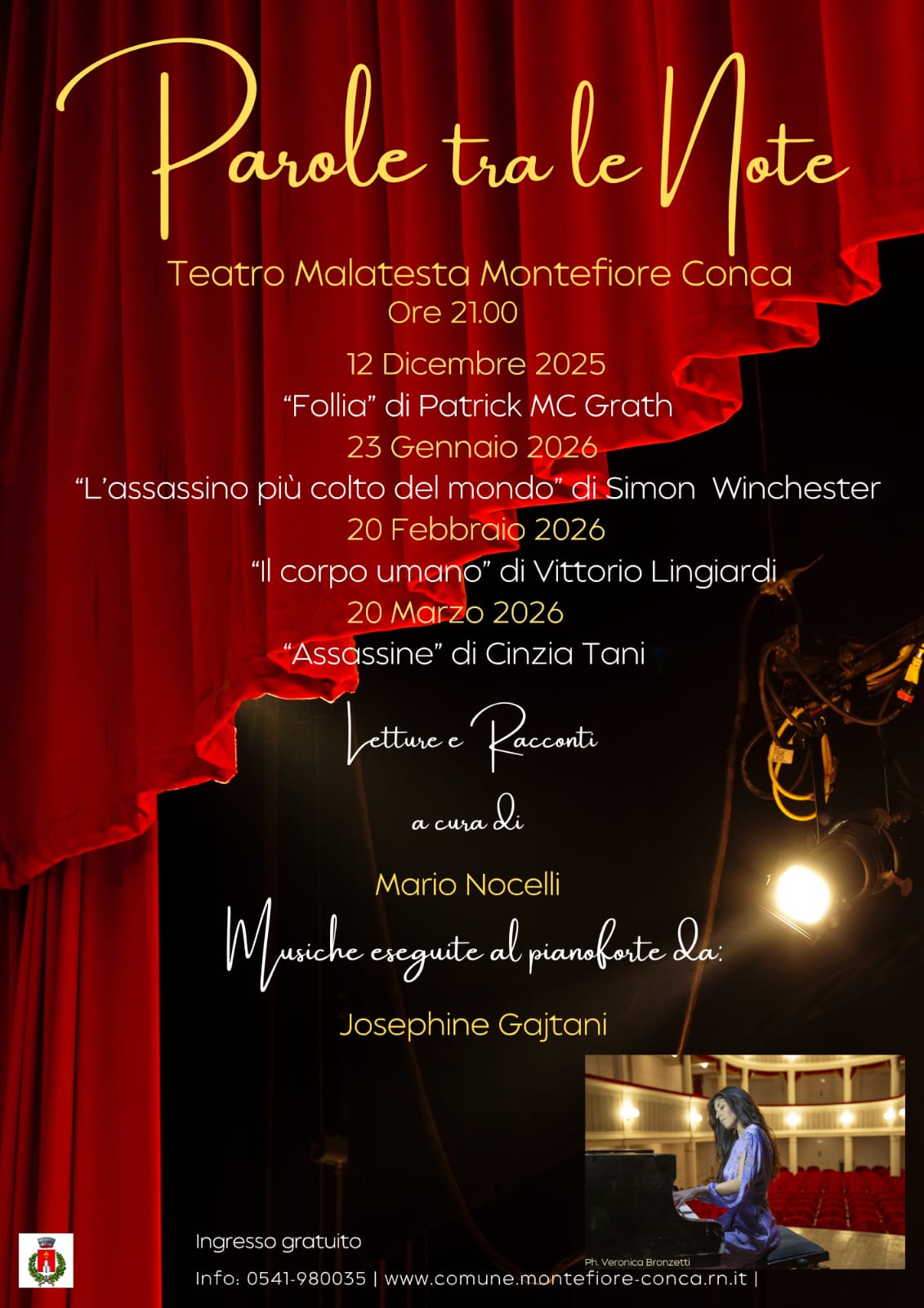 Domani sera, venerdì 20 marzo alle ore 21:00, il Teatro Malatesta di Montefiore Conca ospiterà l’ultimo appuntamento della rassegna “Parole tra le Note”. La serata conclusiva della seconda edizione sarà dedicata al saggio “Assassine” di Cinzia Tani, un’opera che esplora i profili delle donne protagoniste di alcuni tra i più efferati omicidi della storia.