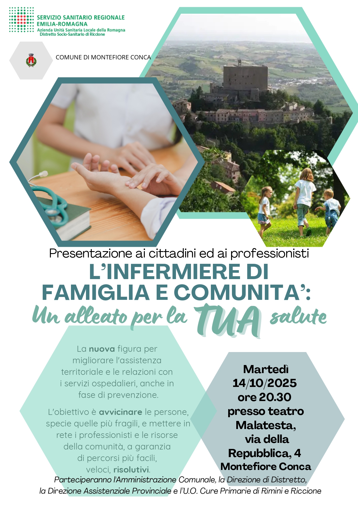 Rafforzare la rete dei servizi sanitari locali e garantire una presa in carico più vicina ai cittadini: con questo obiettivo, martedì 14 ottobre alle 20.30, il Teatro Malatesta di via della Repubblica ospiterà un incontro pubblico dedicato alla presentazione della nuova figura dell’Infermiere di Famiglia e Comunità.