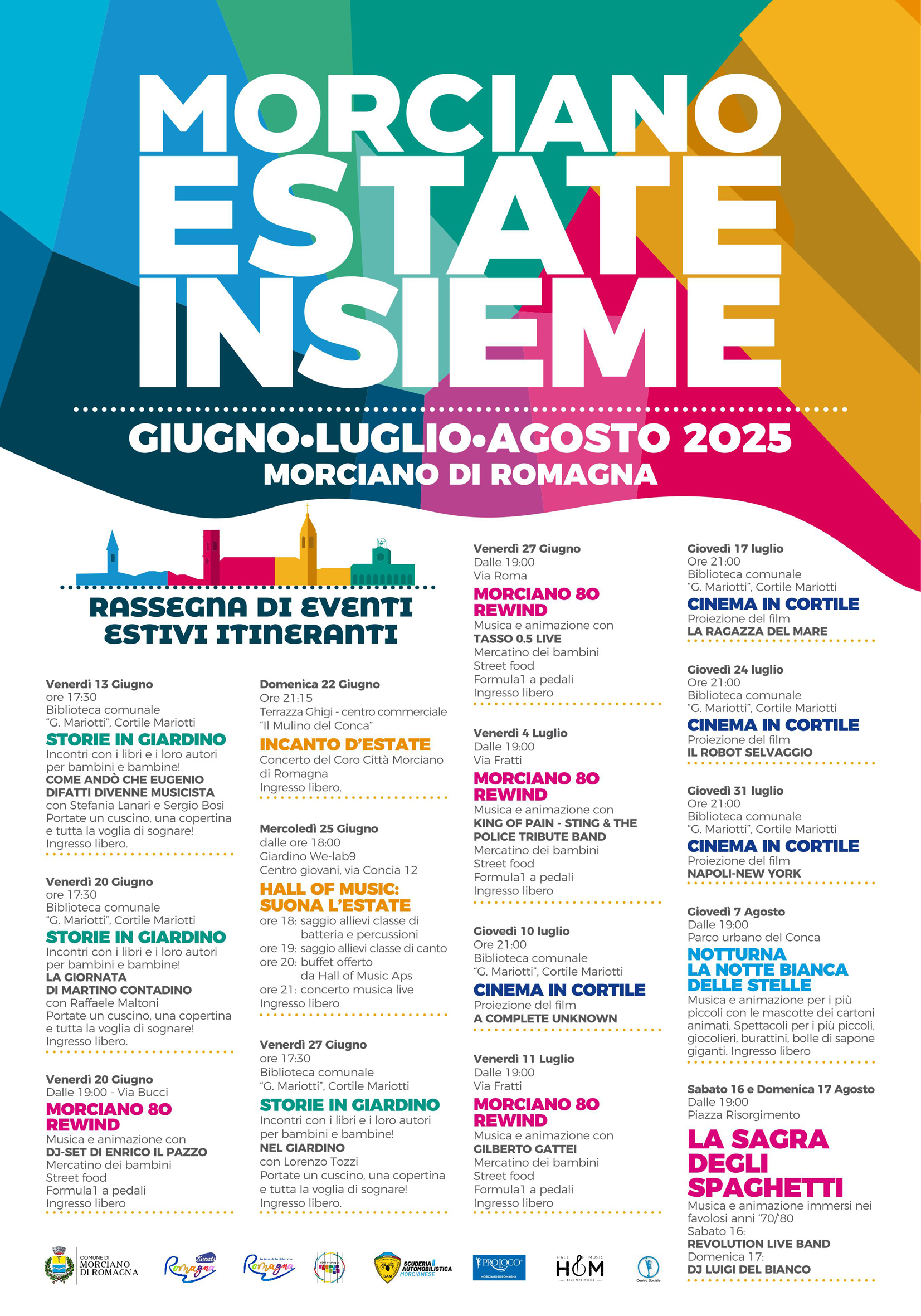 Tutti gli eventi sono ad ingresso libero e pensati per offrire momenti di svago e cultura da vivere insieme, nella splendida cornice estiva di Morciano di Romagna.