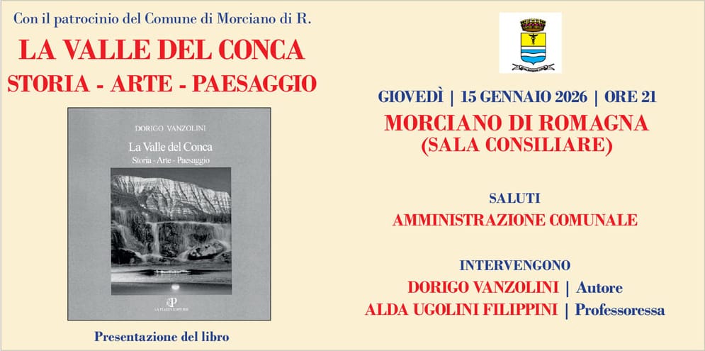 Un’immersione nelle pieghe della memoria locale, per riscoprire l’identità profonda di uno dei territori più suggestivi della Romagna. Dopodomani, giovedì 15 gennaio, la Sala consiliare di Morciano di Romagna diventerà il teatro di un appuntamento culturale dedicato alle radici della comunità, con la presentazione del volume “La Valle del Conca: storia, arte e paesaggio”.