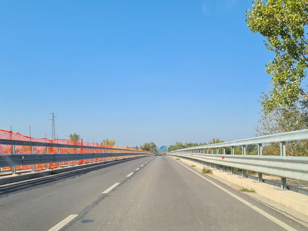 Dal punto di vista tecnico, l’opera è concepita con una soluzione ibrida che unisce travi in acciaio a una soletta collaborante in cemento armato. Attualmente, le maestranze sono concentrate proprio sulla realizzazione di quest’ultima gettata in calcestruzzo, la quale fungerà da base per il futuro manto stradale. Una volta completata, la carreggiata disporrà di due corsie di marcia larghe 3,25 metri ciascuna, delimitate da banchine laterali di un metro e da appositi cordoli dove verranno ancorate le barriere di sicurezza. Nei mesi a venire verranno ultimate le restanti finiture necessarie a rendere l’arteria pienamente operativa.