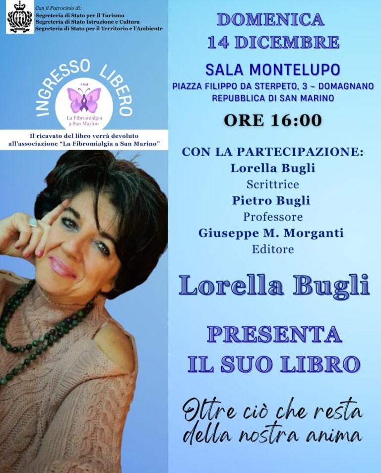 San Marino. Lorella Bugli presenta il suo libro “Oltre ciò che resta della nostra anima”. Domenica 14 dicembre, ore 16.00 – Sala Montelupo, Domagnano Leggi tutto » 11/12/2025