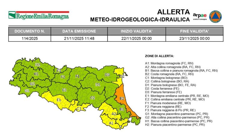 Regione. Allerta meteo per stato del mare, frane e piene dei corsi minori, mareggiate. Valida dalle 00:00 del 22 novembre 2025 fino alle 00:00 del 23 novembre 2025 Leggi tutto » 21/11/2025
