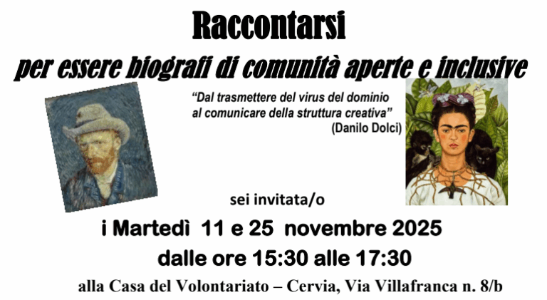 Cervia, laboratori per raccontarsi e diventare ‘biografi di comunità aperte’ Leggi tutto » 10/11/2025