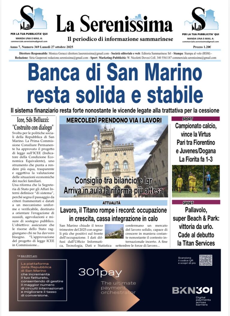 San Marino. ICEE, svolta per l’equità sociale: via libera in Commissione. Sds Belluzzi: “Un nuovo patto di responsabilità per il Paese” Leggi tutto » 26/10/2025