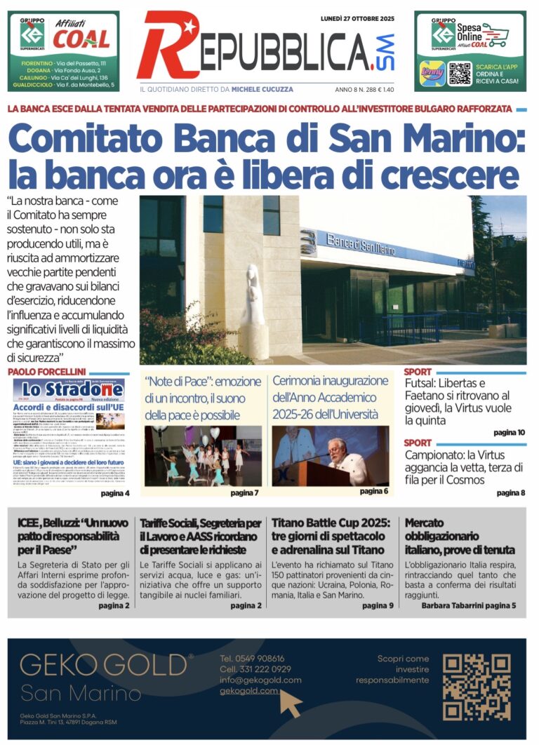 San Marino. Caso Bulgari/BSM. ”Da parte di Repubblica Futura la peggiore politica, quella fatta sulla pelle dei cittadini” … di un lettore Leggi tutto » 26/10/2025