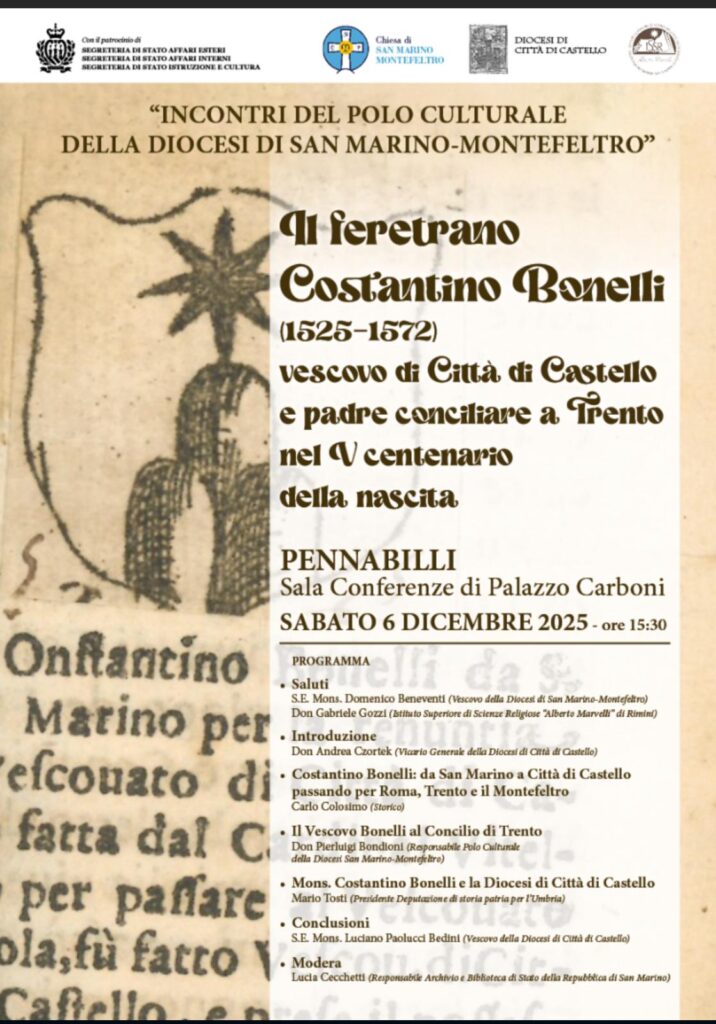Pennabilli. “Incontri del Polo Culturale della Diocesi di San Marino-Montefeltro”, sabato 6 dicembre, ore 15,30 – Sala Conferenze di Palazzo Carboni