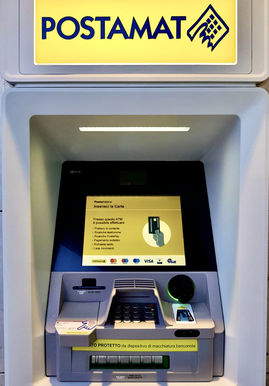 Disponibile tutti i giorni della settimana e in funzione 24 ore su 24, l’ATM Postamat consente di effettuare operazioni di prelievo di denaro contante, interrogazioni su saldo e lista movimenti, ricariche telefoniche e di carte Postepay, oltre al pagamento delle principali utenze e dei bollettini di conto corrente postale.
