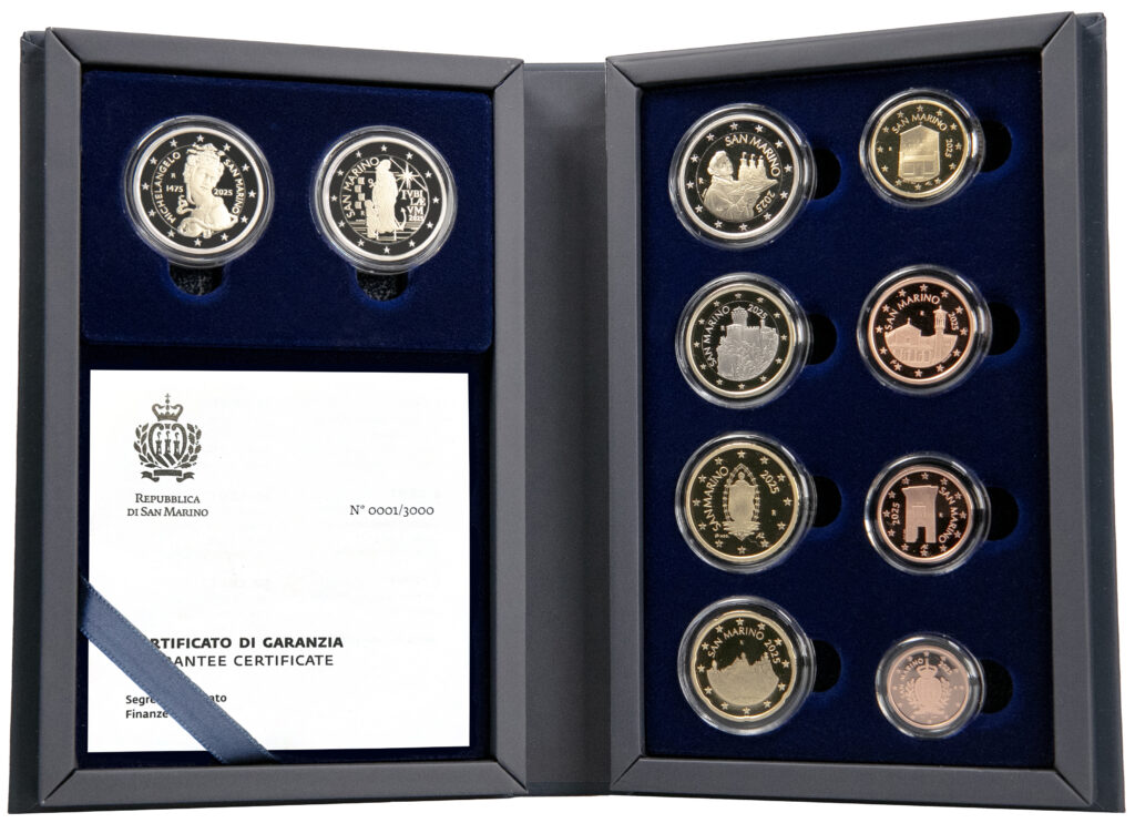 Questa esclusiva serie sarà disponibile a partire da giovedì 9 ottobre 2025 e comprenderà l’intero set delle otto monete in euro di San Marino, arricchite da due monete commemorative da due euro, già emesse nel corso dell’anno in versione fior di conio.