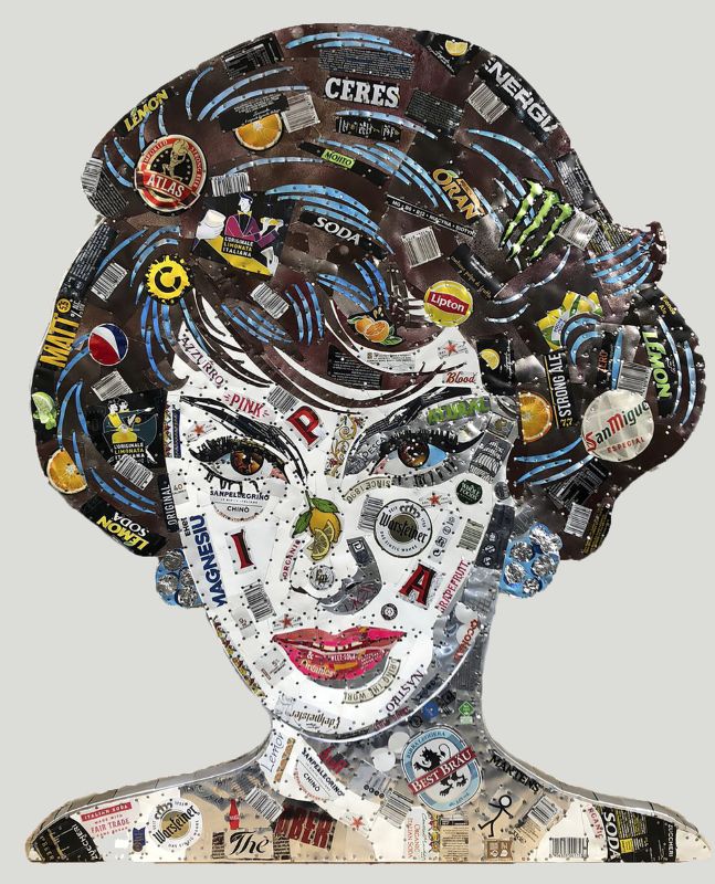 Formatosi all’Accademia di Belle Arti di Urbino, l’artista ha fatto del recupero la sua firma. La spiaggia di Riccione e l’entroterra romagnolo sono diventati la sua “cava” personale, da cui estrae materiali restituiti dal mare o abbandonati dall’uomo. Le lattine, in particolare, vengono elette a nuovi “colori”: frammentate e ricomposte, danno vita a ritratti minuziosi che richiamano la tecnica del mosaico bizantino, o si trasformano in sculture pop. Nascono cosi’ i suoi celebri “Regenerated Portraits” e gli “Animali Fantastici”, cetacei antropomorfi che denunciano lo stato di salute degli ecosistemi marini. Un messaggio potente, tanto che le sue opere, parte della collezione Rosini Gutman, hanno ricevuto riconoscimenti alle Nazioni Unite a New York e alla Farnesina.