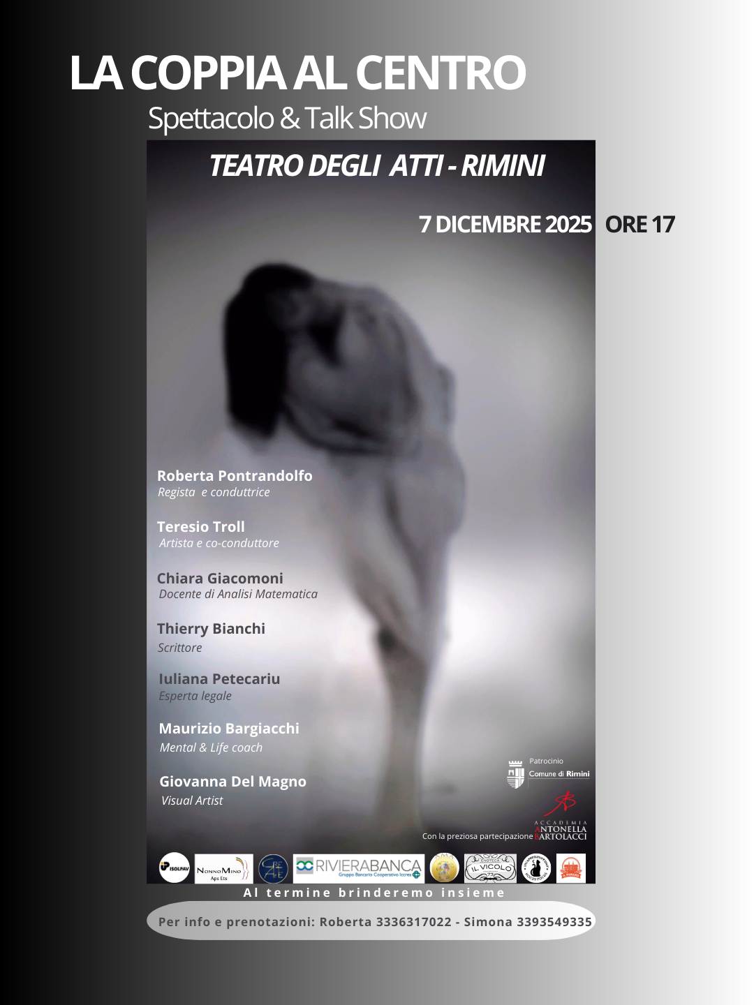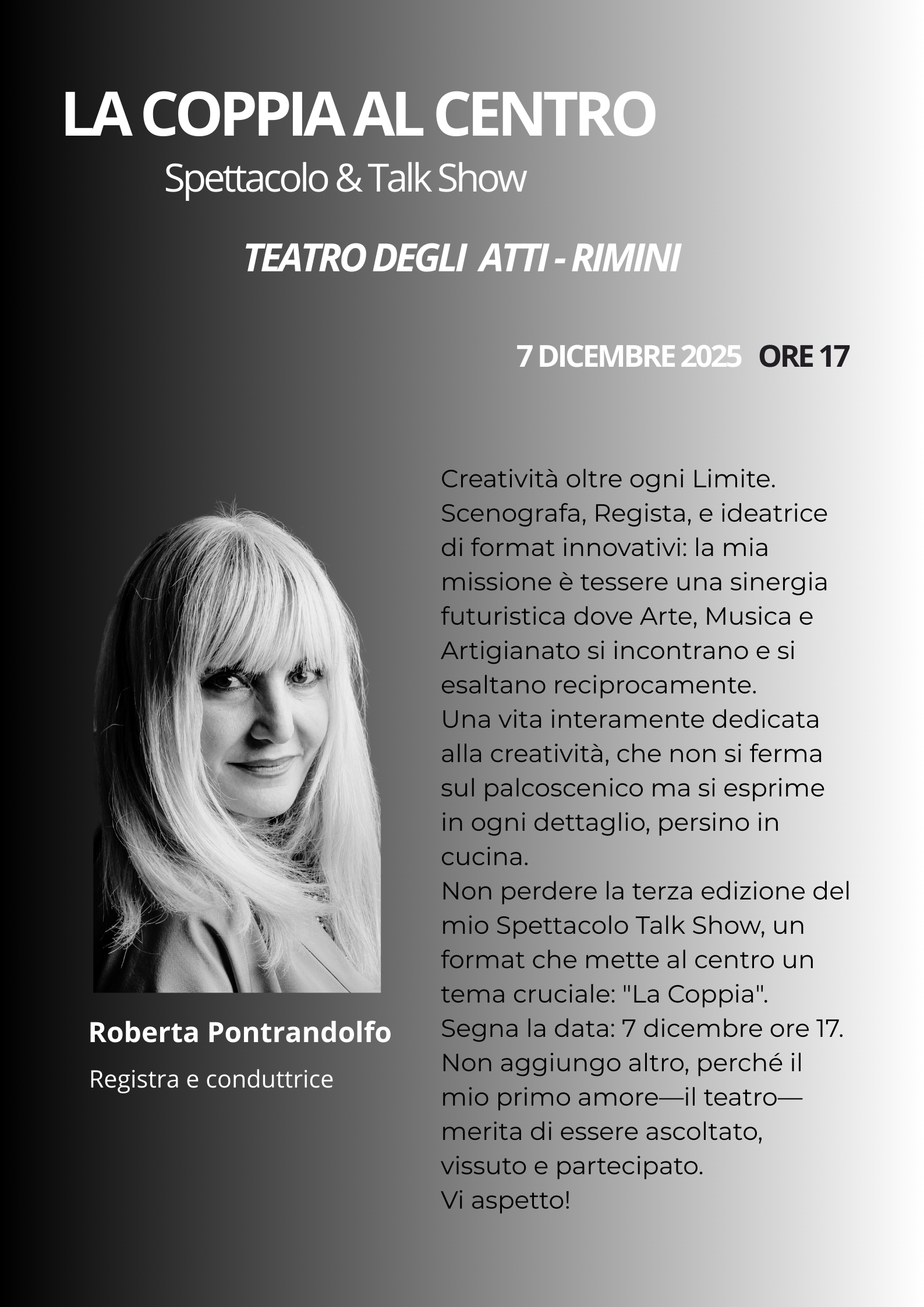 Riscoprire l’empatia in un’epoca segnata dalla disconnessione digitale e dalla crisi dei rapporti umani, cercando una nuova pace tra i generi. È questa la missione ambiziosa della terza edizione del talk show ideato e diretto da Roberta Pontrandolfo, che domenica 7 dicembre alle ore 17 approderà sul palco del Teatro degli Atti di via Cairoli. L’evento, che quest’anno ha ottenuto il patrocinio del Comune di Rimini, si propone di analizzare le dinamiche relazionali partendo dalle radici del “Sacro Femminino” per arrivare alle sfide della contemporaneità.