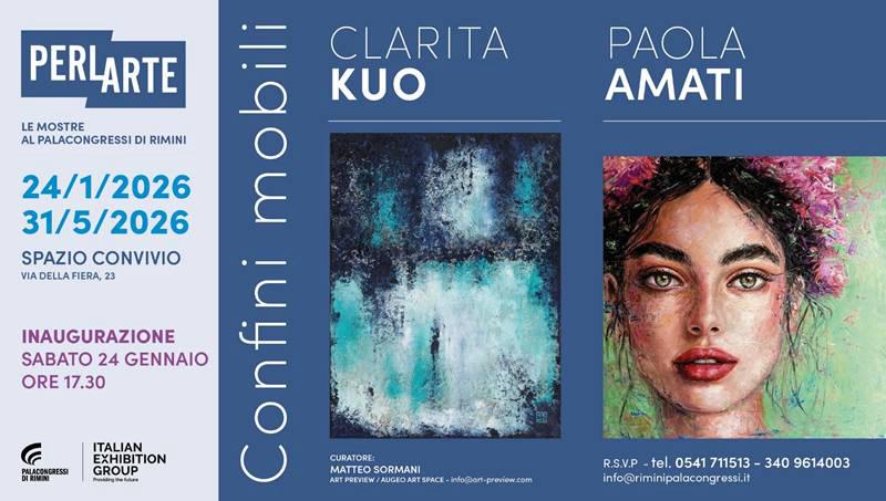 Il dialogo tra Oriente e Occidente, tra lo sguardo interiore e la materia, trova casa nel cuore congressuale della Riviera. Da sabato prossimo, 24 gennaio, lo Spazio Convivio del Palacongressi di Rimini ospitera’ “Confini mobili”, la nuova esposizione del ciclo PERLarte che vede protagoniste le opere di Paola Amati e Clarita Kuo. L’iniziativa, annunciata in una nota da Italian Exhibition Group (IEG), conferma la volonta’ di trasformare la struttura di via della Fiera in un luogo di contaminazione culturale, aperto non solo ai professionisti dei meeting ma all’intera cittadinanza.