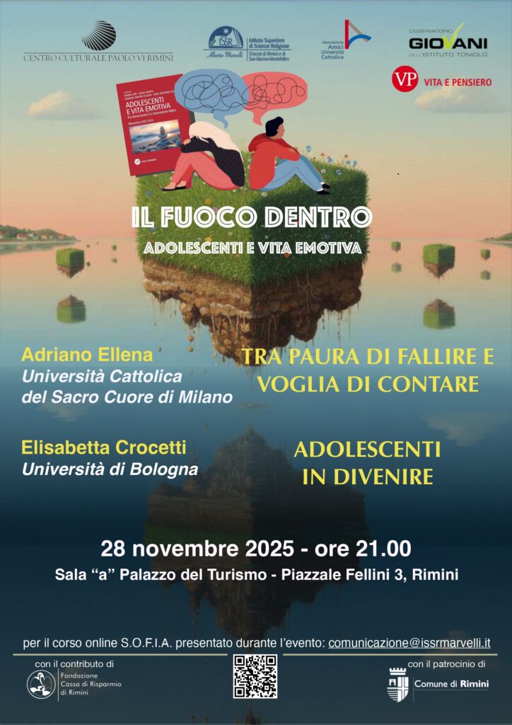 Con il patrocinio del Comune di Rimini, il corso “Il fuoco dentro. Adolescenti e vita emotiva” verrà presentato venerdì 28 novembre alle 21 nella Sala Convegni presso il Palazzo del Turismo di Rimini (piazzale Fellini 3).