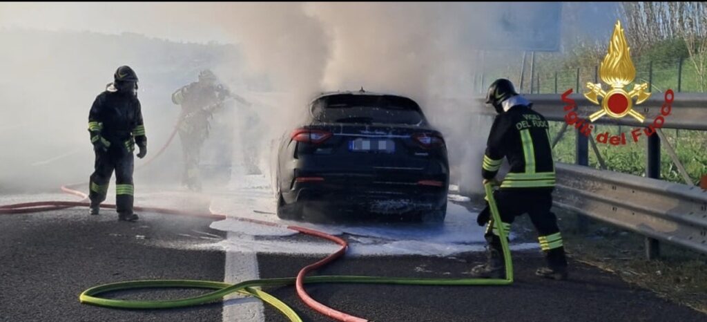Le fiamme, che hanno avvolto completamente il veicolo, sono state domate tempestivamente, evitando che l’incendio potesse propagarsi alle zone limitrofe. Al momento sono ancora in corso le operazioni di messa in sicurezza del veicolo e della carreggiata.
