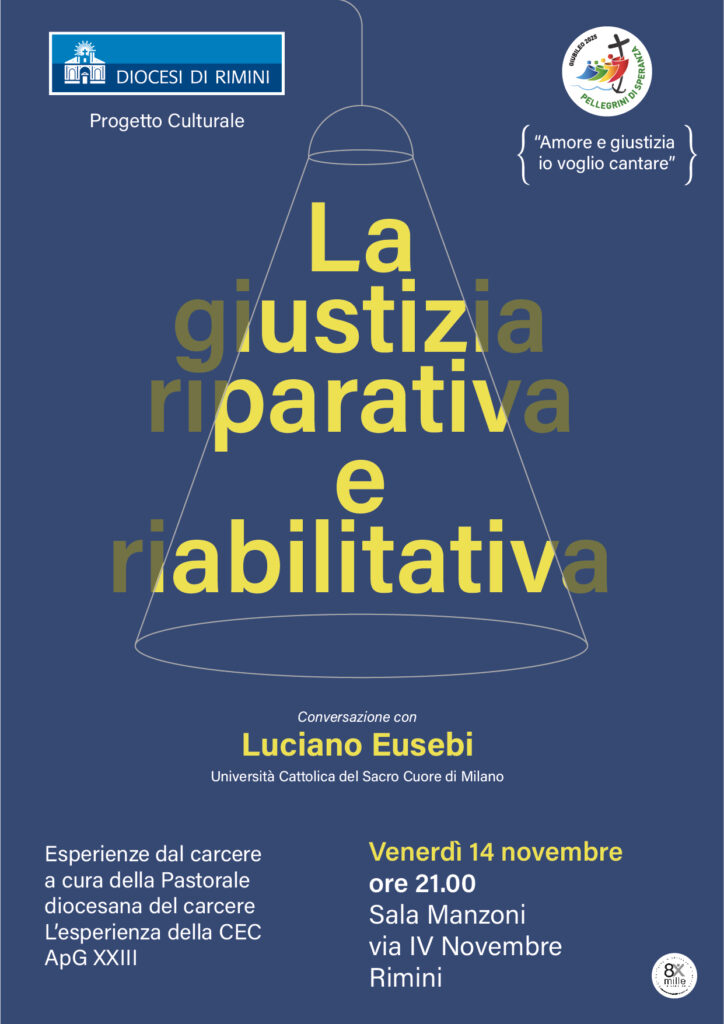 Durante la serata saranno presentate anche alcune esperienze riminesi dal carcere a cura della Pastorale diocesana del carcere e l’esperienza della CEC (Comunità Educante con i Carcerati) della associazione Papa Giovanni XXIII, che mostrano come la giustizia riparativa possa trasformarsi in percorsi concreti di responsabilità e rinascita.