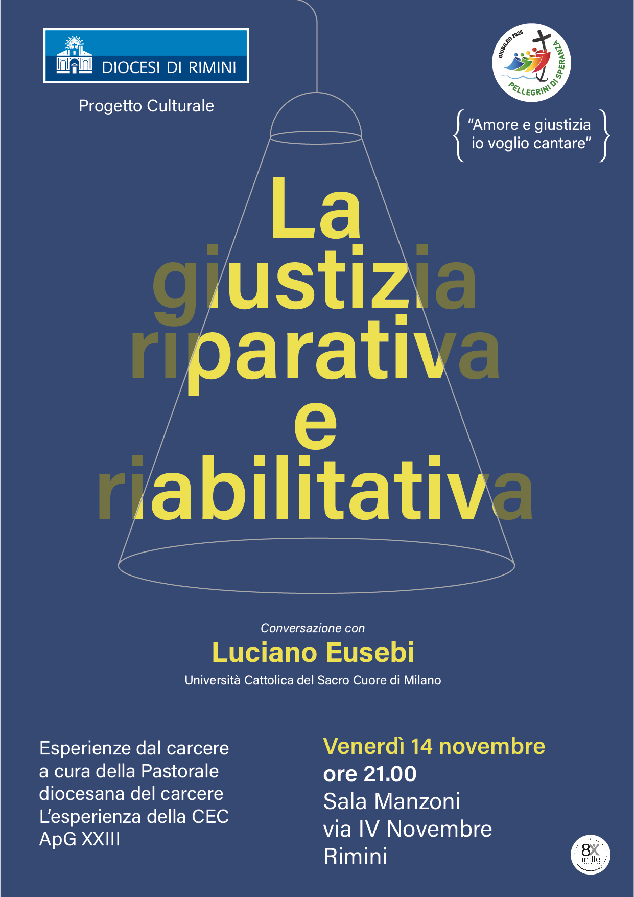 Durante la serata saranno presentate anche alcune esperienze riminesi dal carcere a cura della Pastorale diocesana del carcere e l’esperienza della CEC (Comunità Educante con i Carcerati) della associazione Papa Giovanni XXIII, che mostrano come la giustizia riparativa possa trasformarsi in percorsi concreti di responsabilità e rinascita.