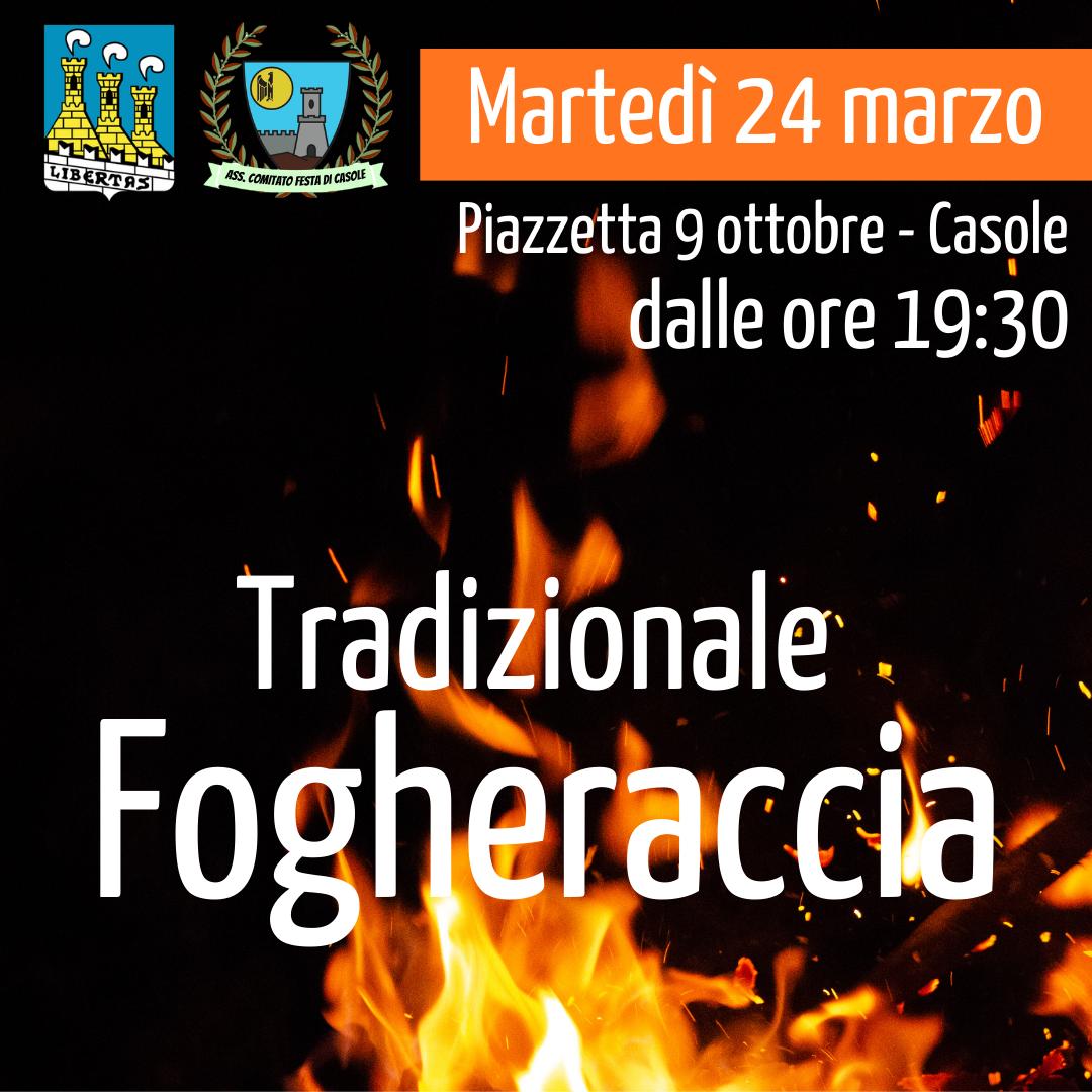 Domani, martedì 24 marzo 2026, la piazzetta di Casole ospiterà la tradizionale Fogheraccia, un appuntamento che rinnova il legame tra la comunità e le proprie radici tra grandi falò e gastronomia locale. Come reso noto in una comunicazione dell’Associazione Comitato Festa Casole, l’evento offrirà una serata di festa all’aperto con la possibilità di cenare direttamente in piazza grazie agli spazi allestiti per l’occasione, celebrando uno dei riti più sentiti del territorio.