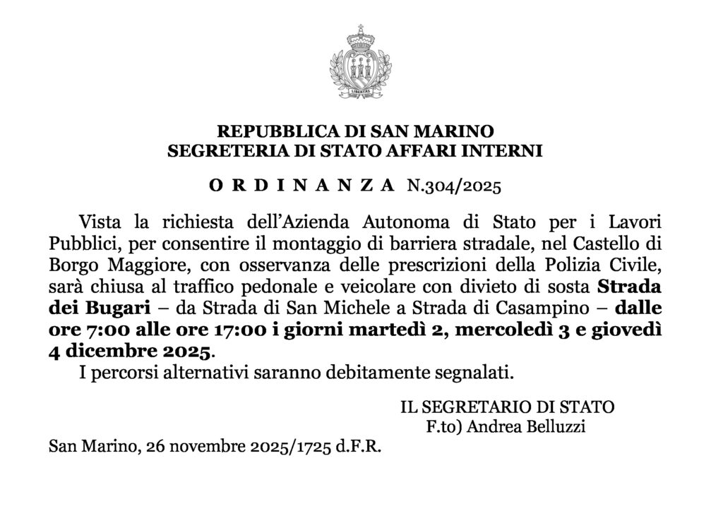 San Marino. ISS. Certificati di esistenza in vita: sono 14 gli accordi tra ISS e i comuni limitrofi 26/11/2025