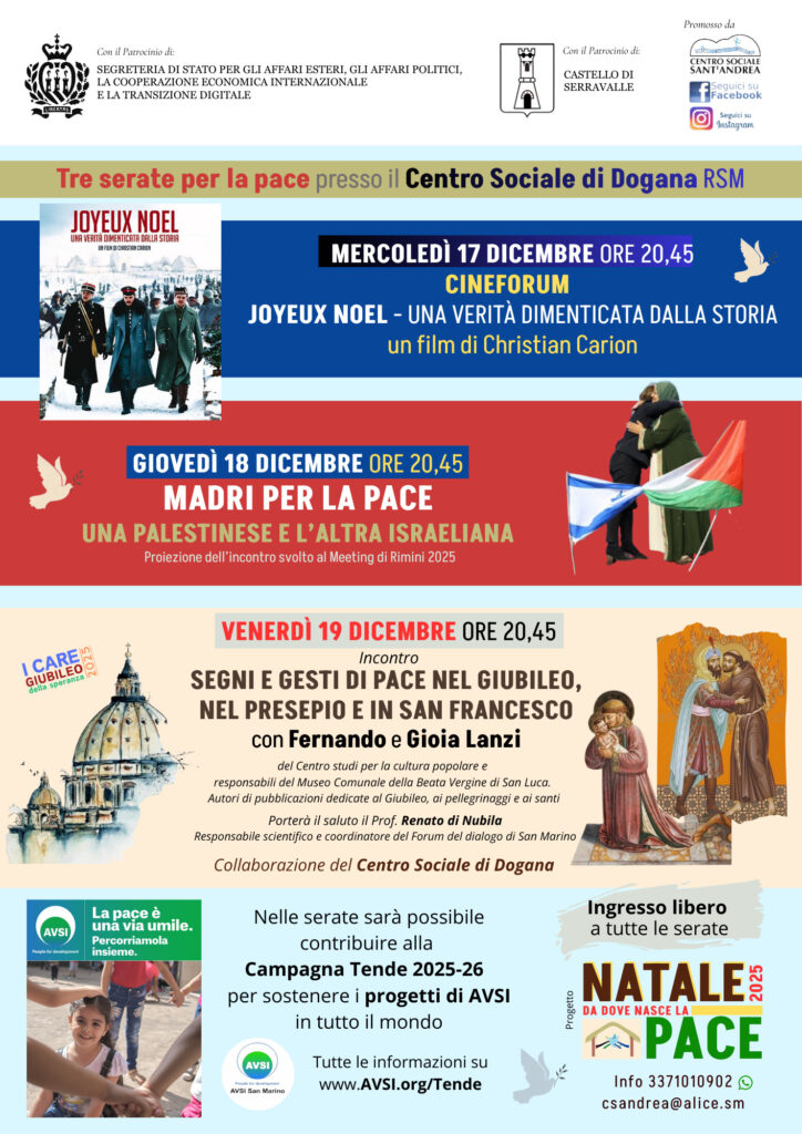 Iniziativa promossa da Centro Sociale S. Andrea con il patrocinio della Segreteria di Stato per gli Affari Esteri, gli Affari Politici, la Cooperazione Economica Internazionale e la Transizione Digitale e della Giunta di Castello di Serravalle