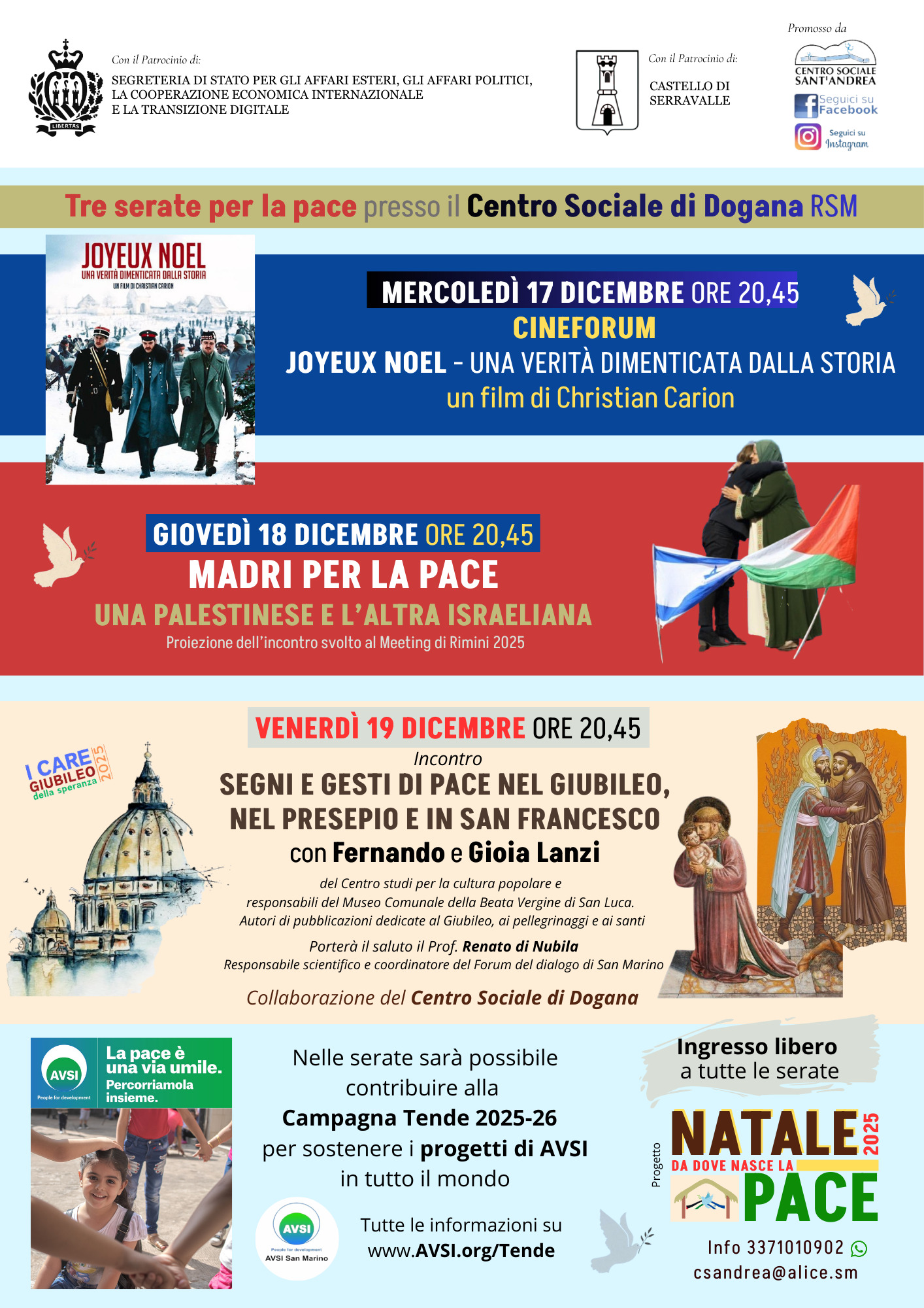 Con il progetto NATALE 2025 DA DOVE NASCE LA PACE, desideriamo proporre alcuni appuntamenti per riflettere sul tema della pace ed in particolare approfondire quello che ha detto Papa Leone XIV: “La pace non è un’utopia spirituale: è una via umile, fatta di gesti quotidiani, che intreccia pazienza e coraggio, ascolto e azione. Eche chiede oggi, più che mai, la nostra presenza vigile e generativa”.