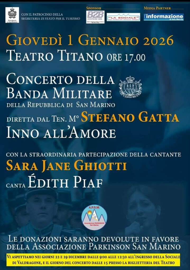 San Marino. Concerto della Banda Militare, giovedì 1 gennaio 2026 – Teatro Titano ore 17.00