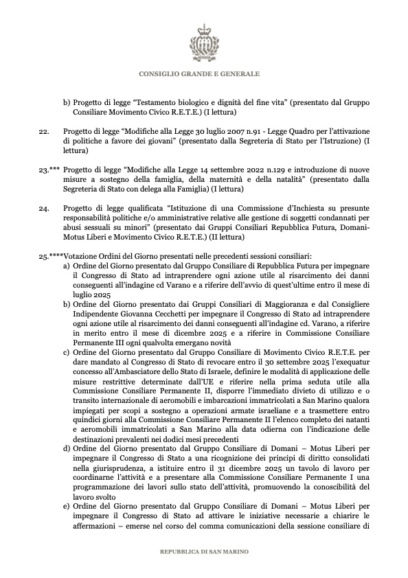 Ecco l’ordine del giorno: