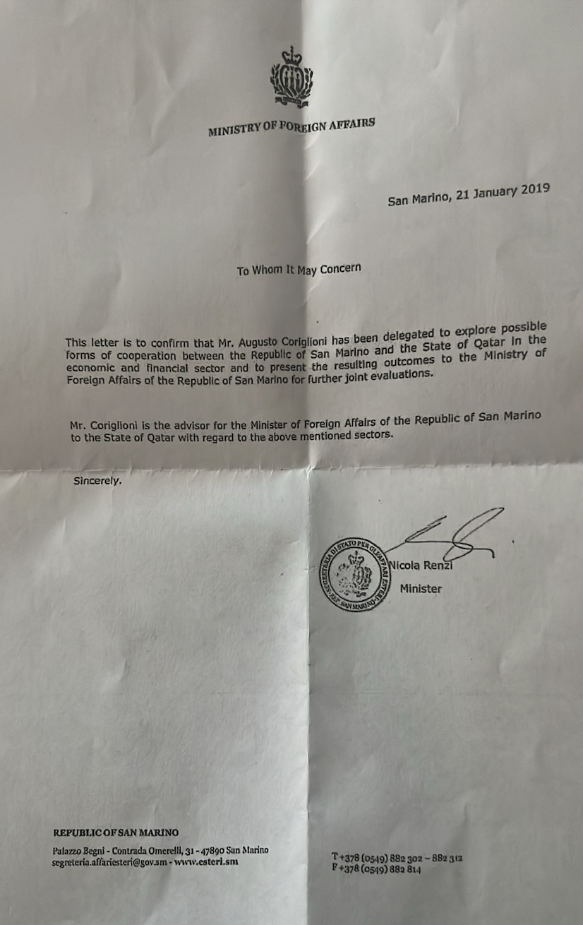Lettera Nicola Renzi:Coriglioni