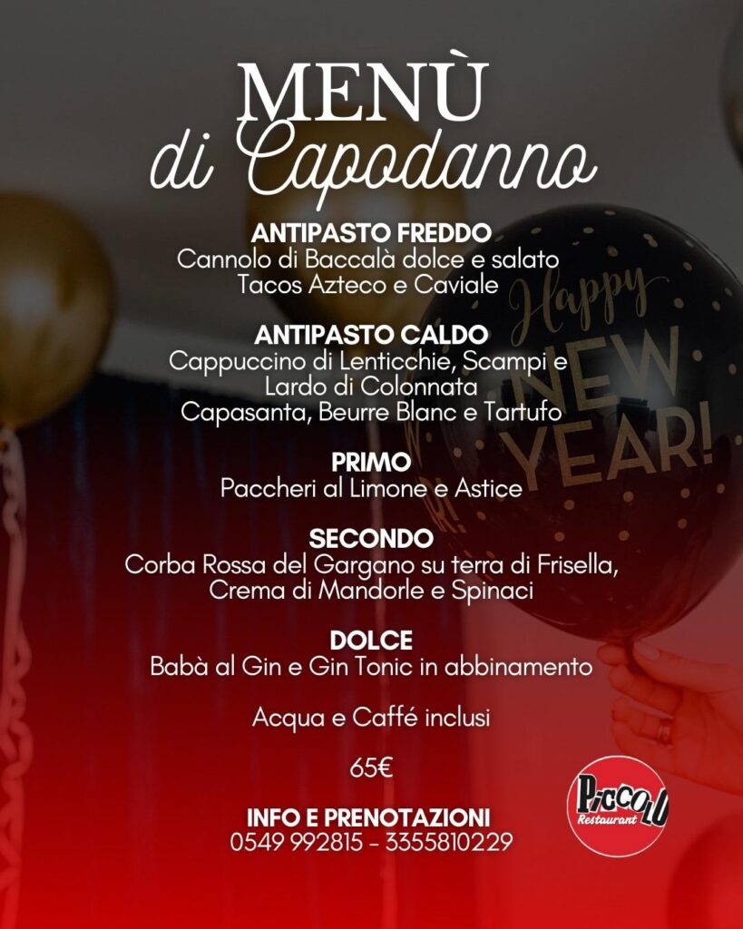 • San Marino. Il Piccolo Restaurant: ecco il menù di Capodanno