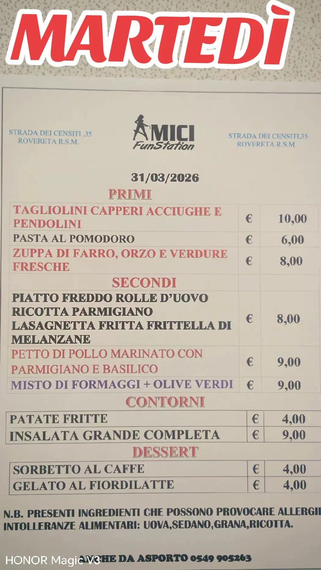San Marino. Ecco il menù di Amici Fun Station
