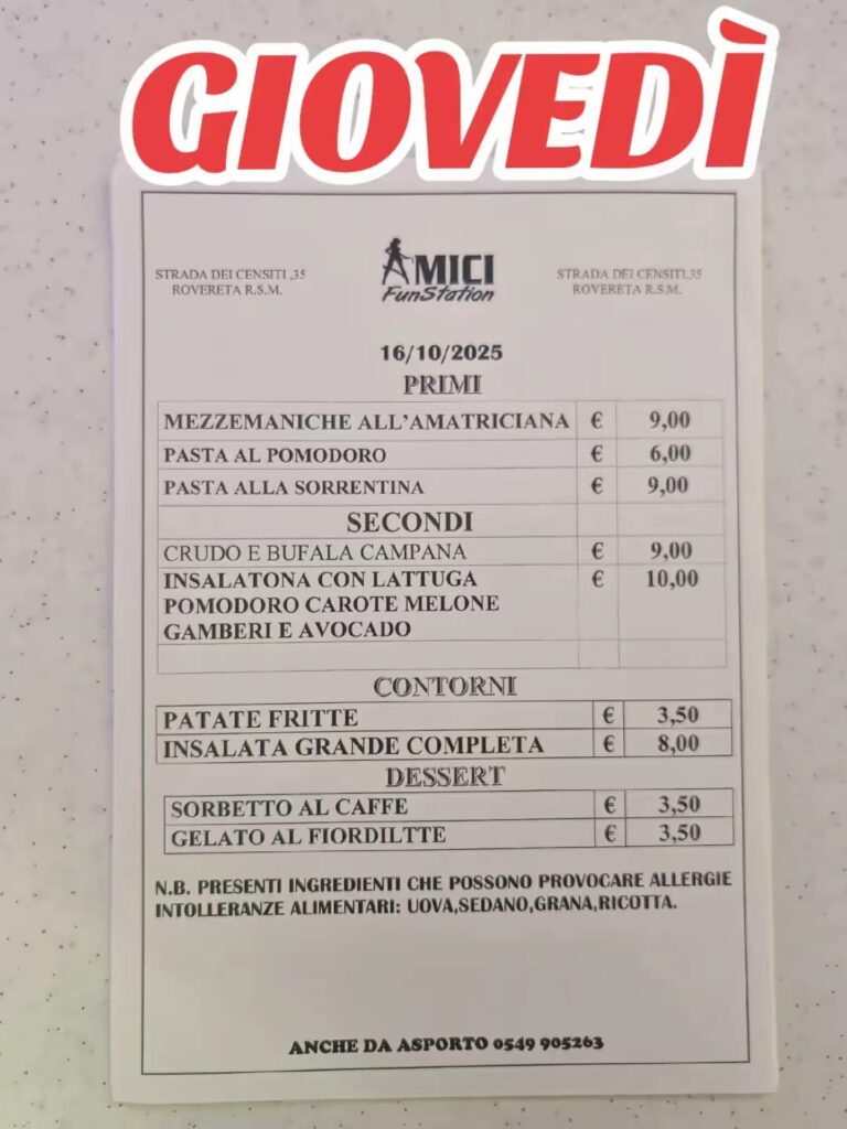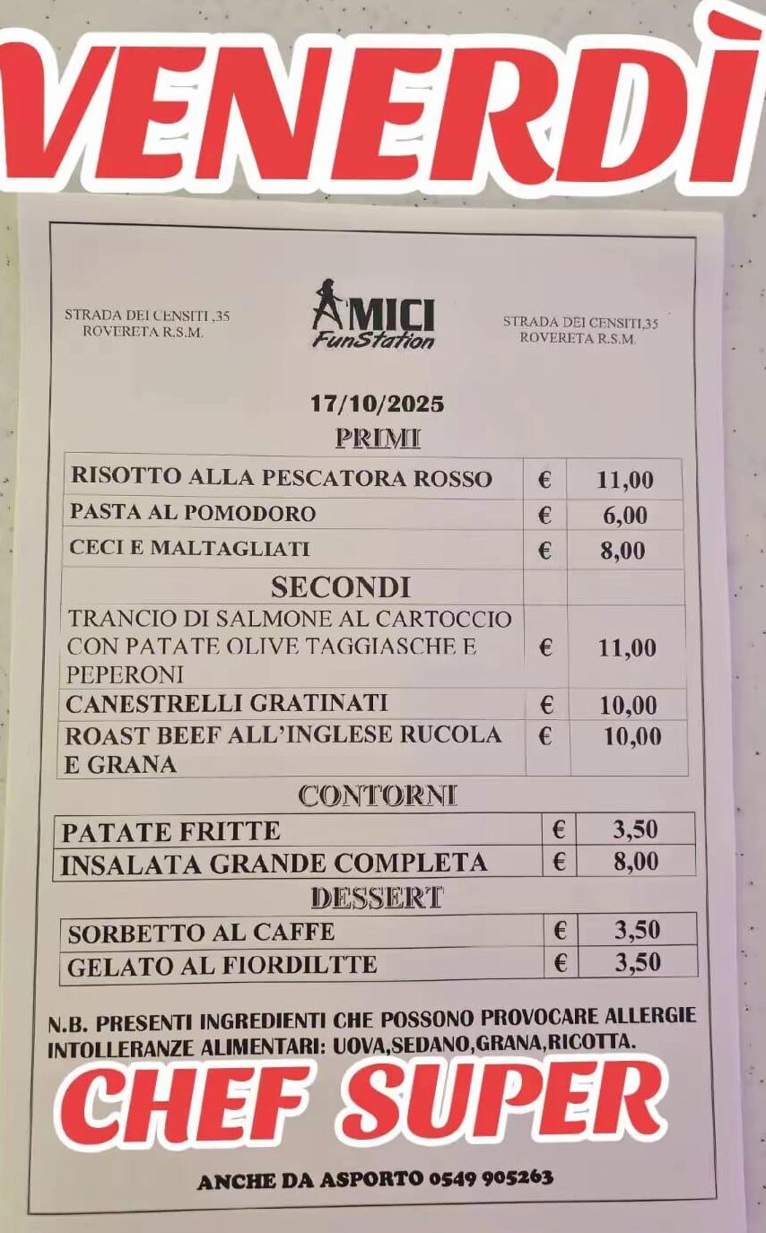 San Marino. Ecco il menù di Amici Fun Station di oggi. Buon appetito!