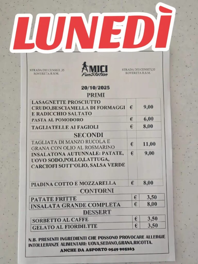 San Marino. Ecco il menù di oggi di AMICI FUN STATION