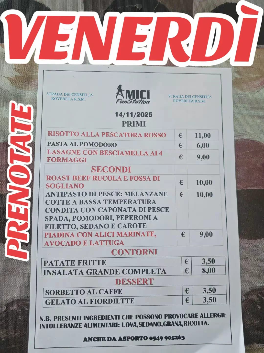 San Marino. Ecco il menù di oggi di AMICI FUN STATION