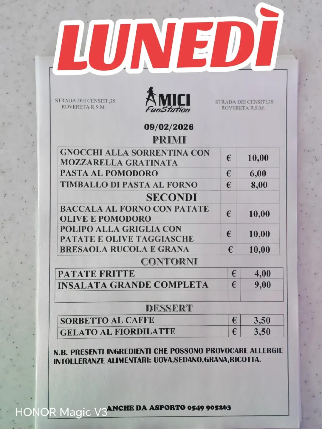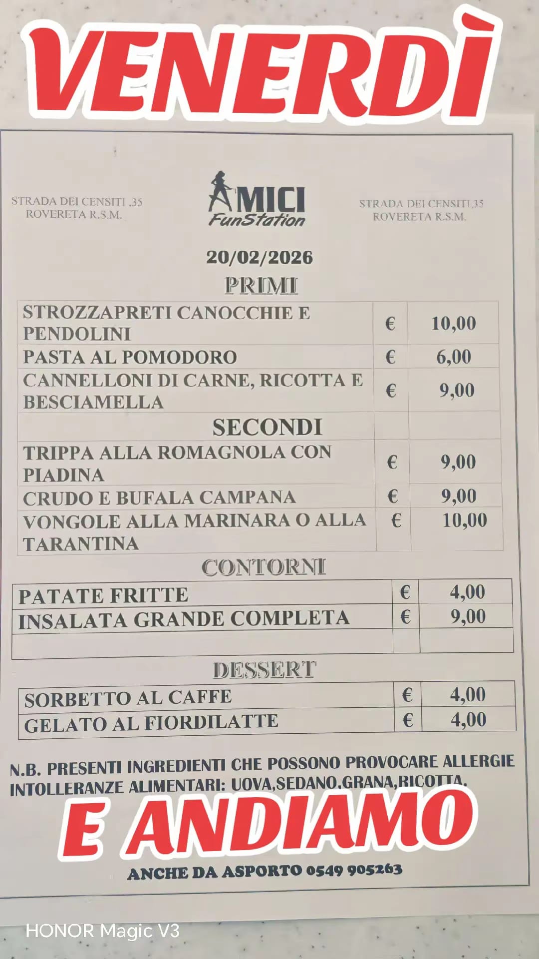 San Marino. Ecco il menù di oggi di Amici Fun Station