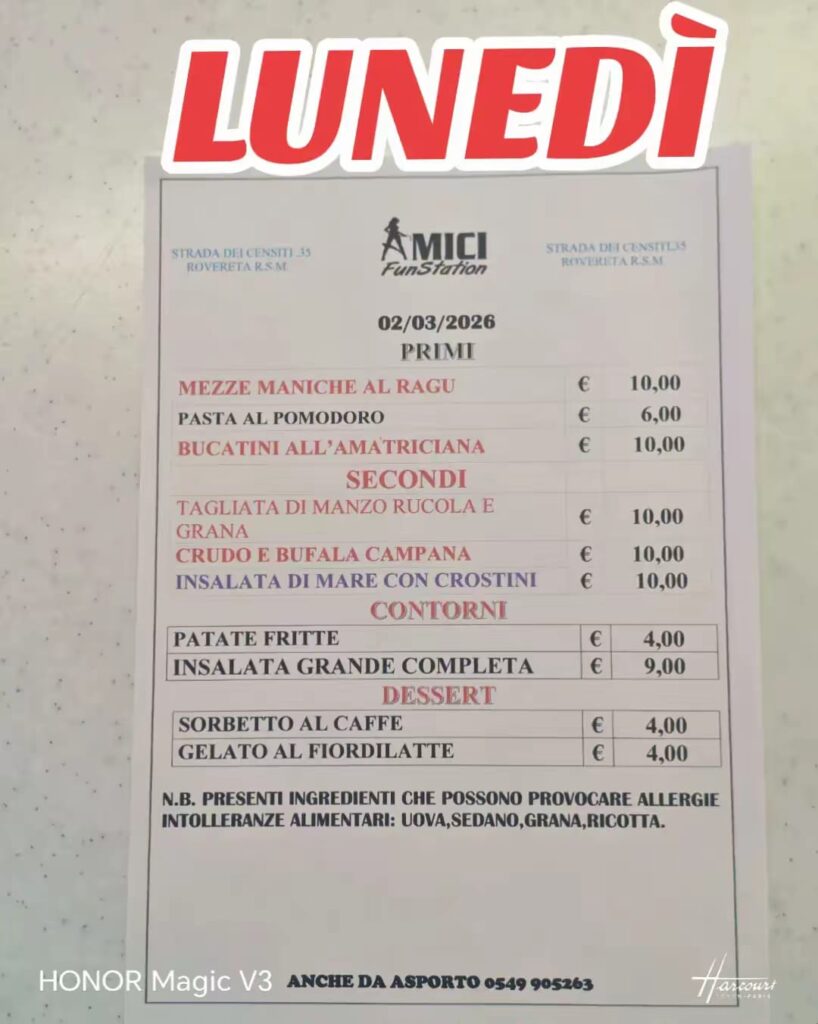 San Marino. Ecco il menù di oggi di Amici FunStation!