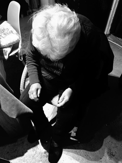 Accanto a queste opere materiche, una serie di fotografie in bianco e nero esplora la dignità e la dolcezza degli ultimi giorni di vita di Gina. Le immagini, lontane da ogni idealizzazione, restituiscono la realtà nella sua essenzialità, testimoniando la forza mite e la grazia che abitano la vulnerabilità.