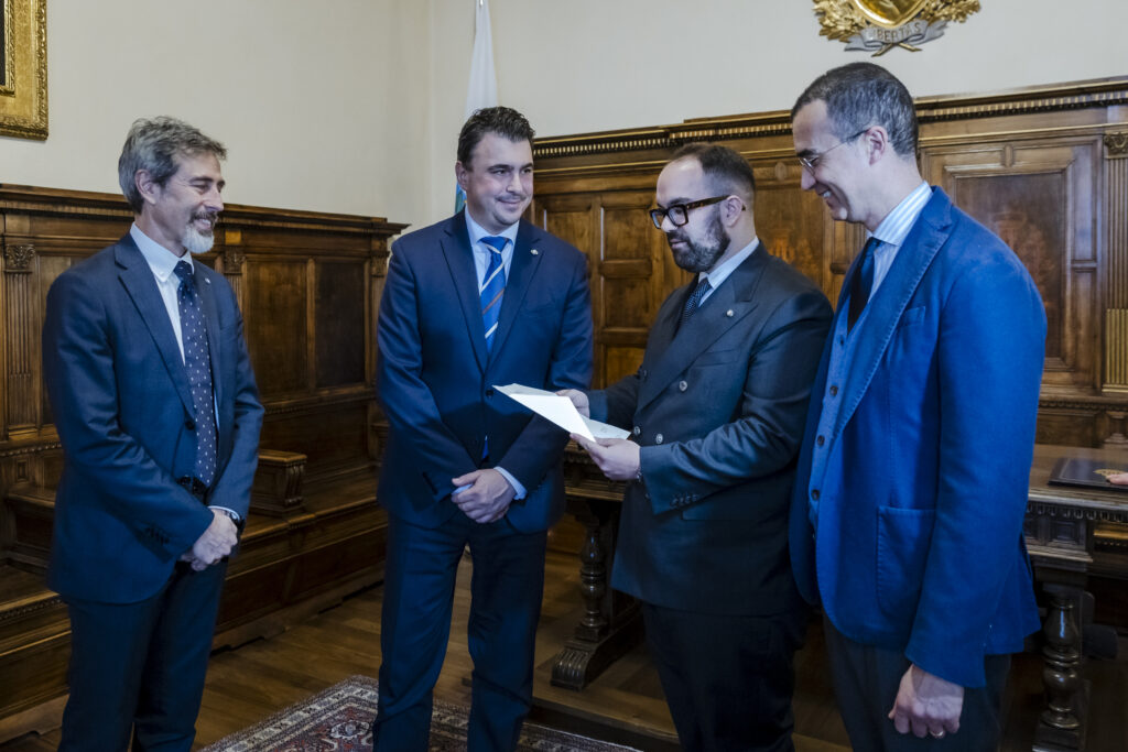 Nella giornata odierna i Capitani Reggenti della Repubblica di San Marino, Matteo Rossi e Lorenzo Bugli, hanno ricevuto in Udienza pubblica il Presidente e i Vertici di Cassa di Risparmio della Repubblica di San Marino, introdotti nell’occasione dal Segretario di Stato per gli Affari Interni, Andrea Belluzzi.