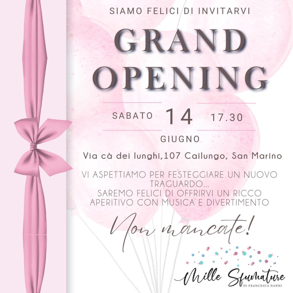 San Marino. GRAND OPENING MILLE SFUMATURE, Sabato 14 giugno ore 17,30. NON MANCARE!