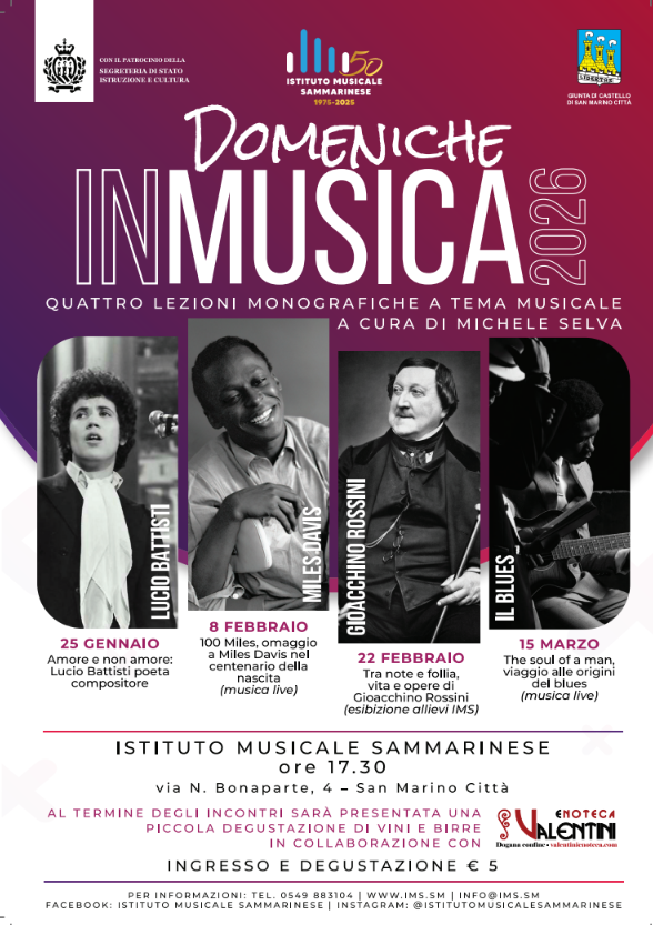 In un comunicato diffuso dall’Istituto Musicale Sammarinese, si annuncia il secondo appuntamento della rassegna culturale che punta a esplorare i confini dei generi sonori. Dopo il successo dell’incontro inaugurale dedicato a Lucio Battisti, la serie “Domeniche in Musica” torna protagonista domenica 8 febbraio alle ore 17.30, presso la sede di via Napoleone Bonaparte 4, nel cuore di San Marino Città. Questa volta, i riflettori saranno puntati su una delle figure più imponenti e rivoluzionarie del ventesimo secolo: Miles Davis.