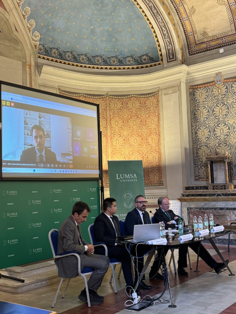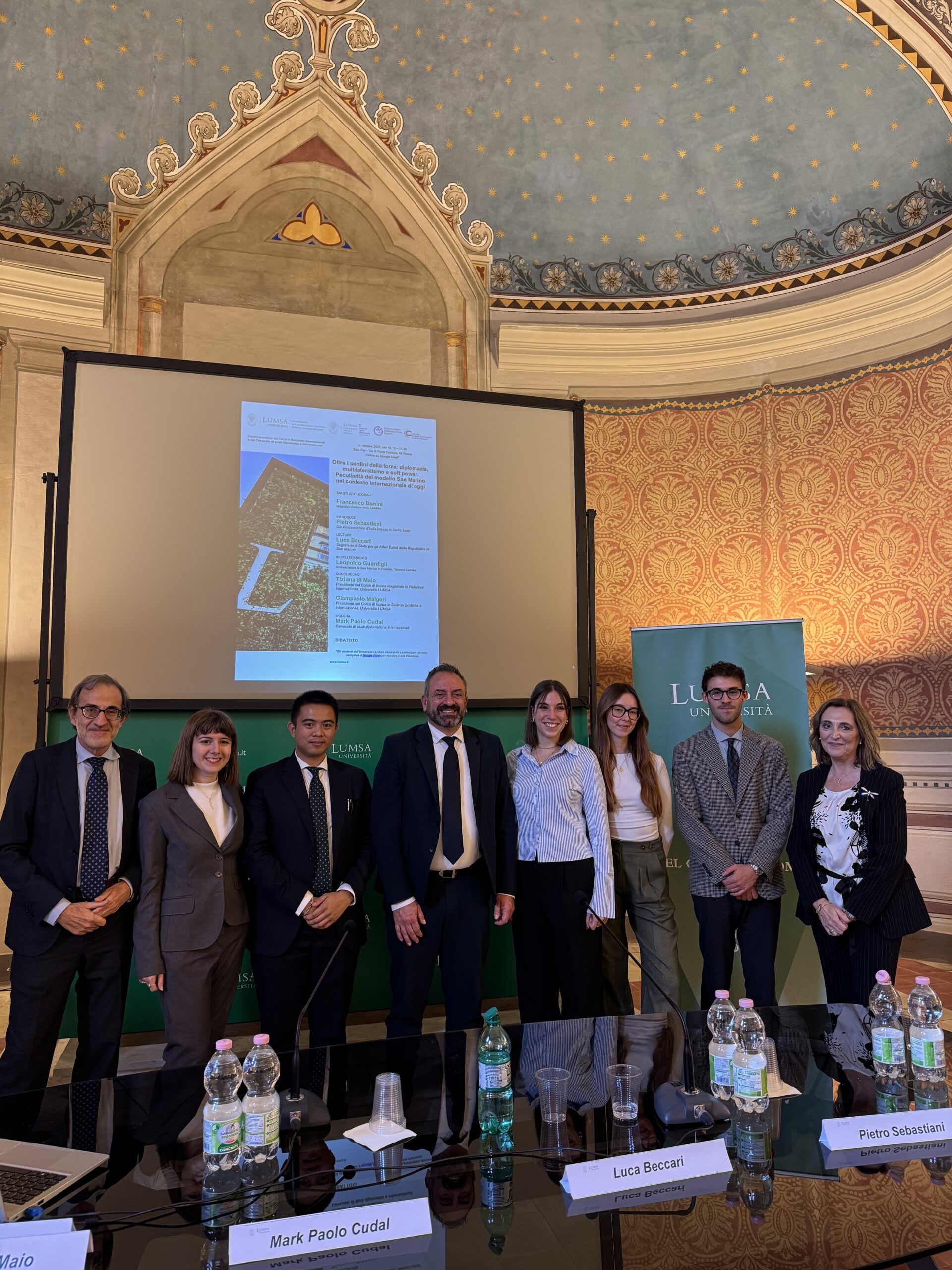Il Segretario di Stato per gli Affari Esteri, Luca Beccari, è intervenuto oggi a Roma, presso la Libera Università Maria Santissima Assunta (LUMSA) all’incontro dal titolo “Oltre i confini della forza: diplomazia, multilateralismo e soft power – peculiarità del modello San Marino nel contesto internazionale di oggi” nell’ambito della XVI edizione del Festival della Diplomazia; presenti all’incontro la Rappresentanza Permanente di San Marino a Roma, guidata dall’Ambasciatore Daniela Rotondaro e una numerosa rappresentanza del Corpo diplomatico accreditato a San Marino.