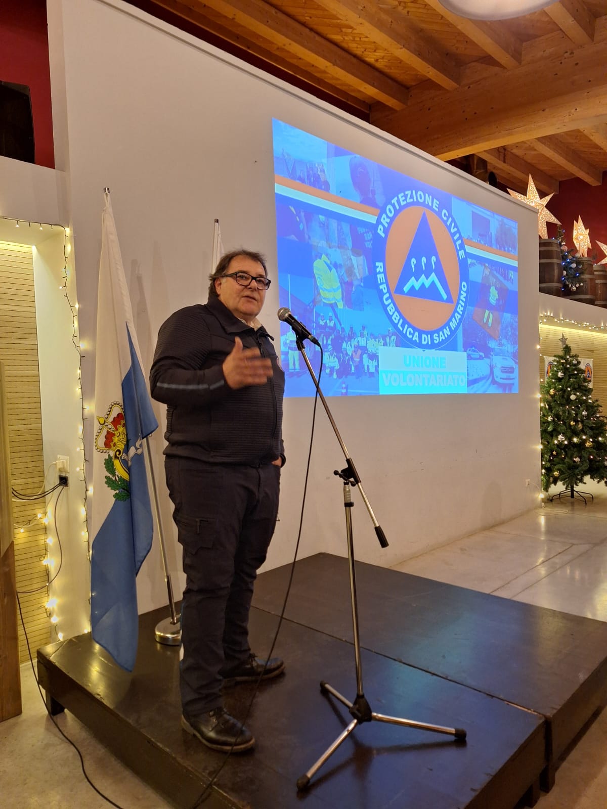 “Ho scoperto in voi una grande famiglia – ha detto il Segretario Ciacci nel saluto iniziale – capace di far sventolare la bandiera di San Marino, dentro e fuori il territorio, nei momenti di difficoltà. Ormai siete un’istituzione”. In effetti, quella bandiera biancoazzurra cucita sulla divisa e su tutti i DPI, ha ricordato Fabio Berardi, rappresenta non solo una squadra, un corpo di volontari, ma un vero e proprio Stato, soprattutto quando la colonna di mezzi e di uomini arriva nelle zone disastrate e si mette a lavorare nel fango e nelle macerie. Questo è grande motivo di orgoglio: la San Marino che fa e fa bene.