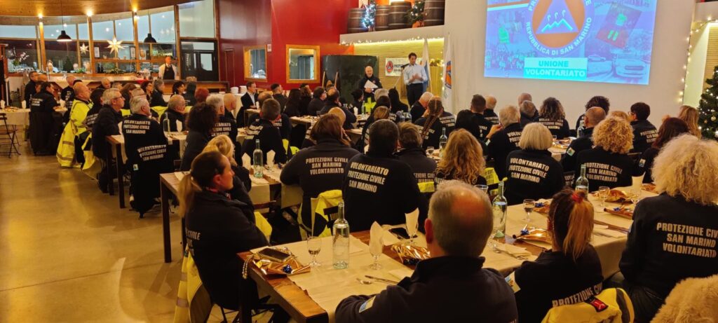 C’erano oltre 80 volontari sammarinesi, dei 200 attualmente attivi, martedì sera al Podere Lesignano, per celebrare questo momento che ha aperto ufficialmente il fittissimo calendario delle attività e dei progetti per il 2026. A presiedere la riunione: il Segretario di Stato Matteo Ciacci, il capo della Protezione Civile Pietro Falcioni, il presidente dell’Unione Marino Bedetti con tutto il direttivo, i Capitani di Castello neoeletti e quelli ancora in carica.