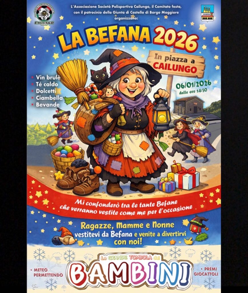 L’Associazione Società Polisportiva Cailungo e il Comitato Festa San Rocco, con il patrocinio della Giunta di Castello di Borgo Maggiore, organizzano anche quest’anno “La Befana in Piazza”.