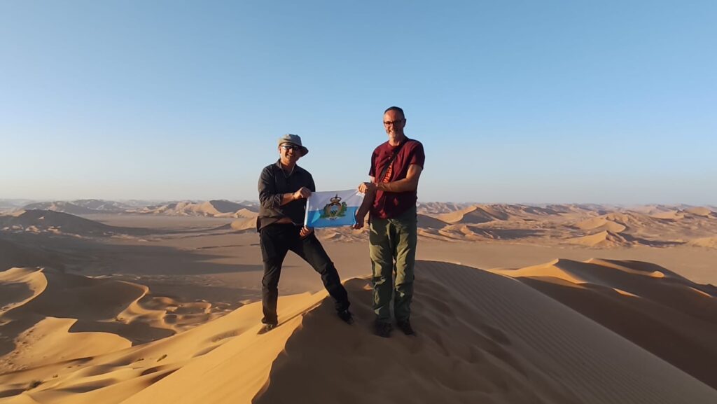 Dei nostri lettori ci inviano questa foto e questo messaggio: ”Un caro saluto dal deserto del Rub’ al Khali Oman da Cristian Vannucci e Antonio Pazzaglia