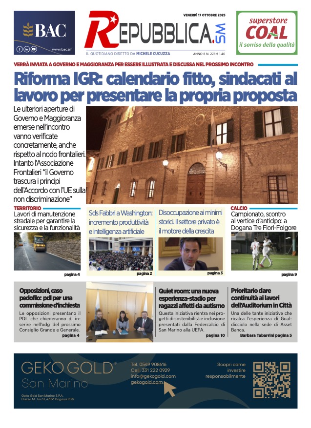 Leggi successivoSan Marino. La prima pagina de La SerenissimaSuccessivo