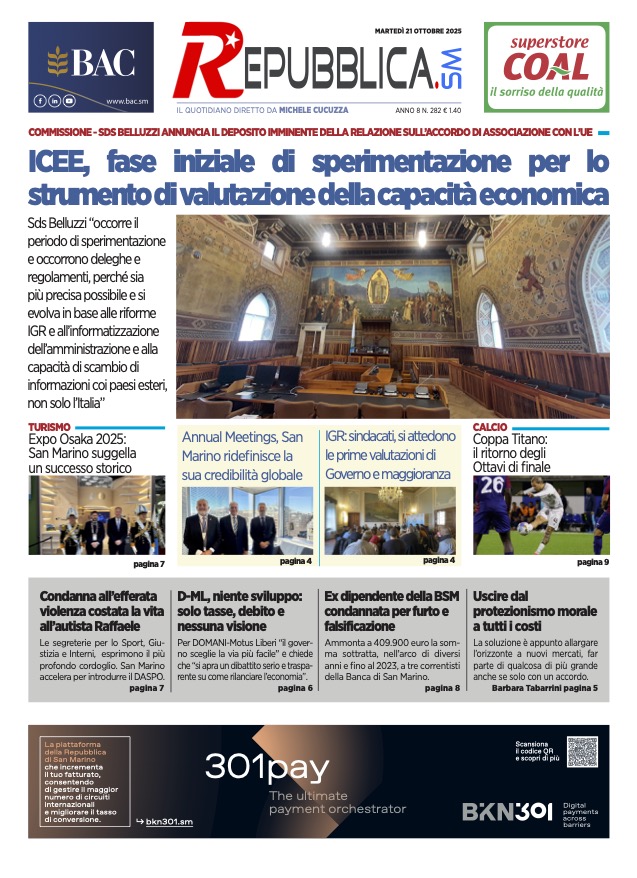 Leggi successivoSan Marino. La prima pagina de LA SERENISSIMASuccessivo