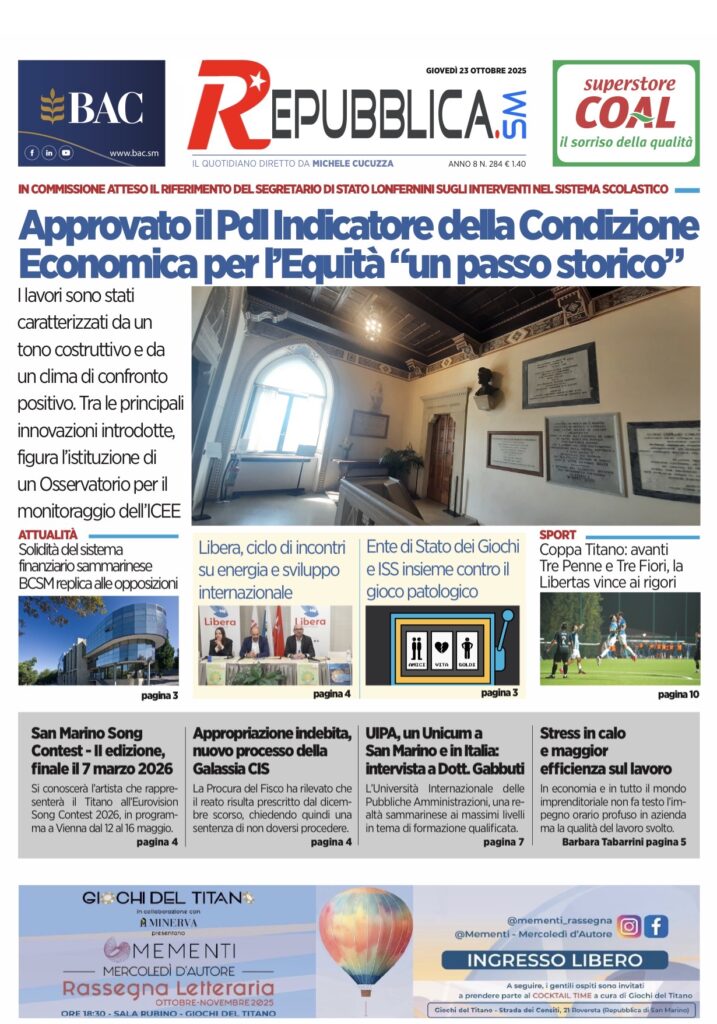 Leggi successivoSan Marino. La prima pagina de La SerenissimaSuccessivo