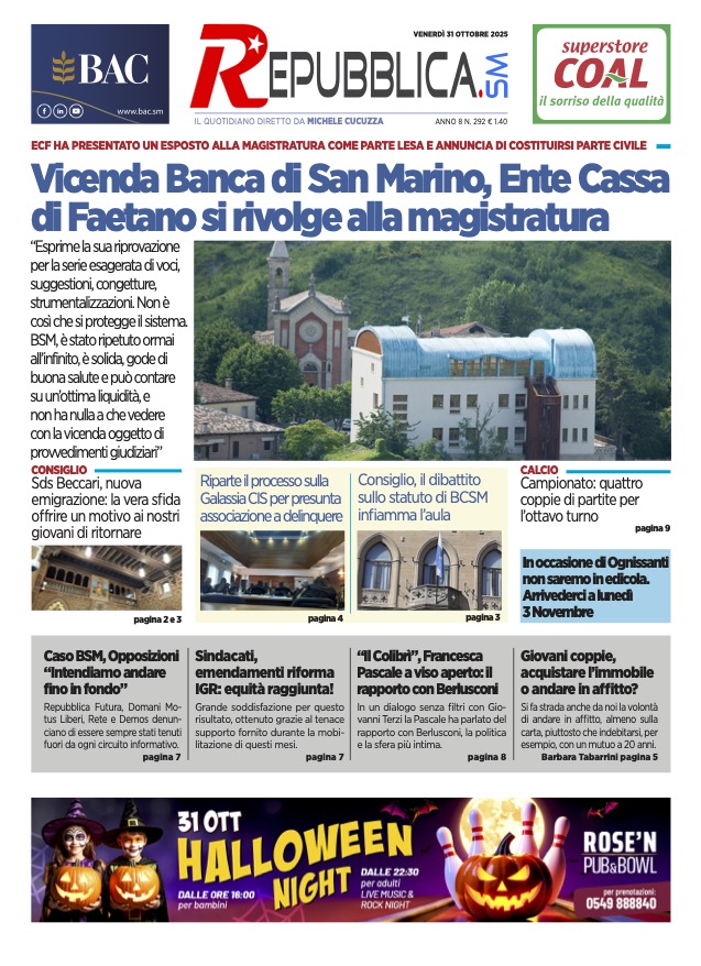 San Marino. La prima pagina de LA REPUBBLICASM