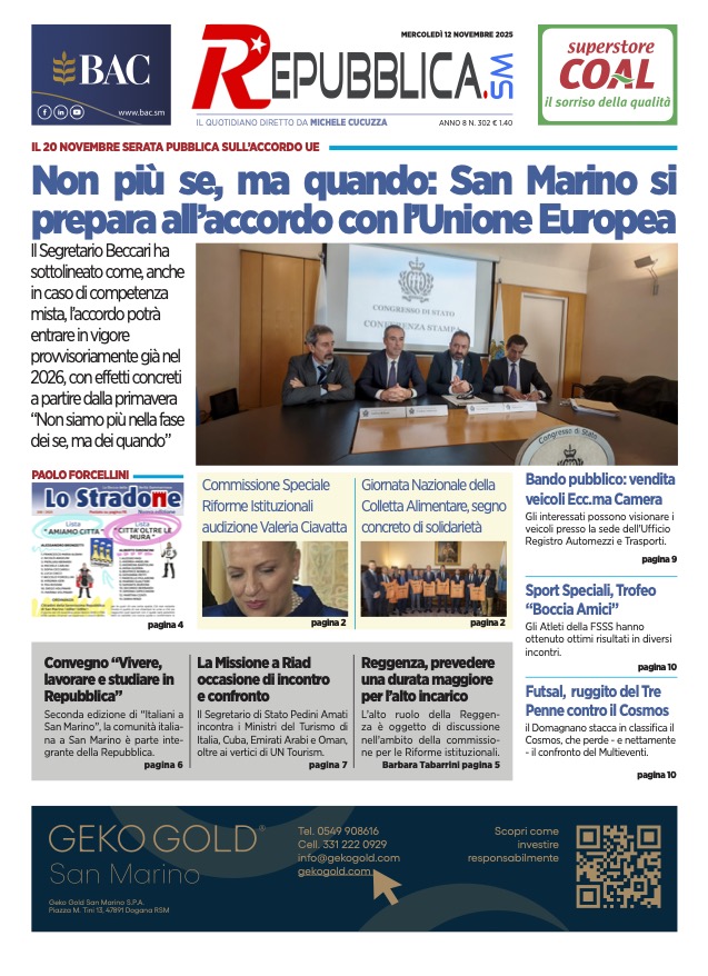 Leggi successivoSan Marino. La prima pagina de LA SERENISSIMASuccessivo