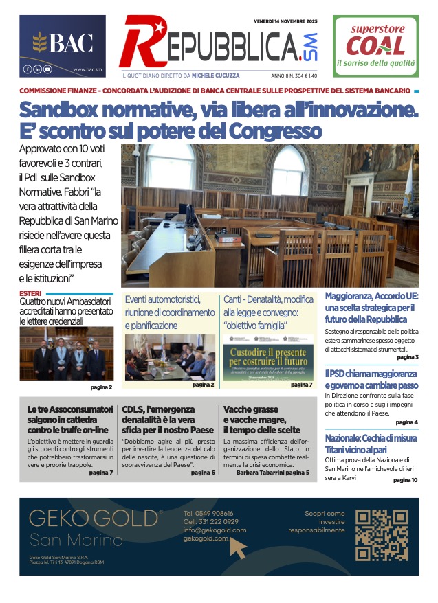 San Marino. La prima pagina de LA REPUBBLICASM.