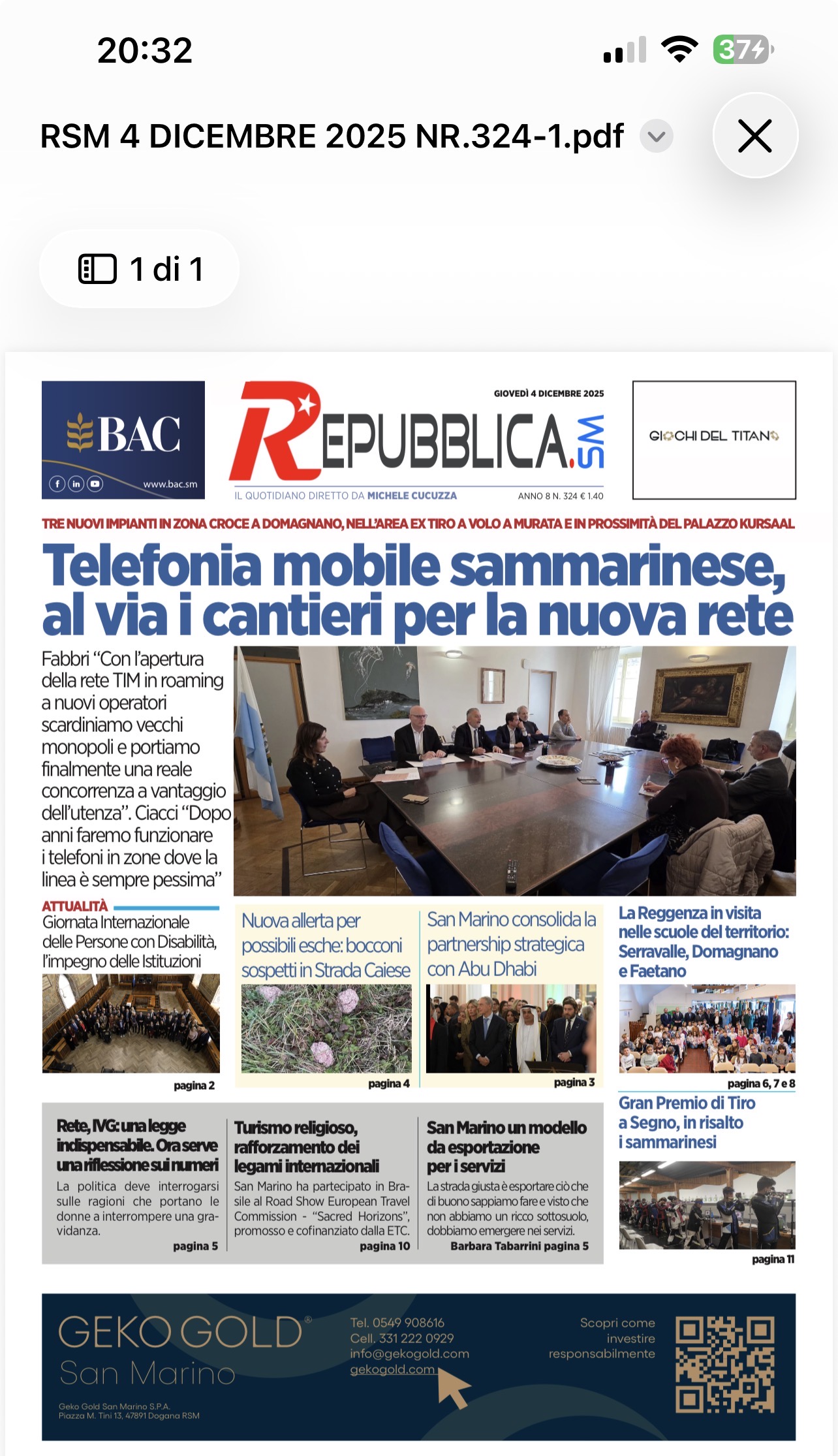 Leggi successivoSan Marino. La prima pagina de La SerenissimaSuccessivo